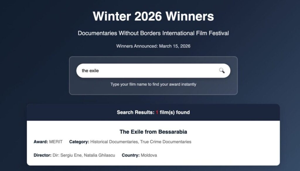 Premiul obținut la Festivalul Internațional de Filme Documentare fara Granițe marchează o recunoaștere internațională importantă pentru filmul moldovenesc și pentru efortul de a readuce în memoria colectivă tragedii istorice ignorate.